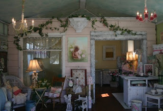 Below are some photos of my studio that my loving and talented husband built. For years I have been collecting "junk" and was able to use it to build my studio. I especially love the leaded glass window inside. We have reclaimed barn wood and old siding throughout. I have seasonal sale events inside my studio with talented friends and artisans, and people always comment on how old and established the studio looks. They believe it an old building, when in fact it was built under two years ago.